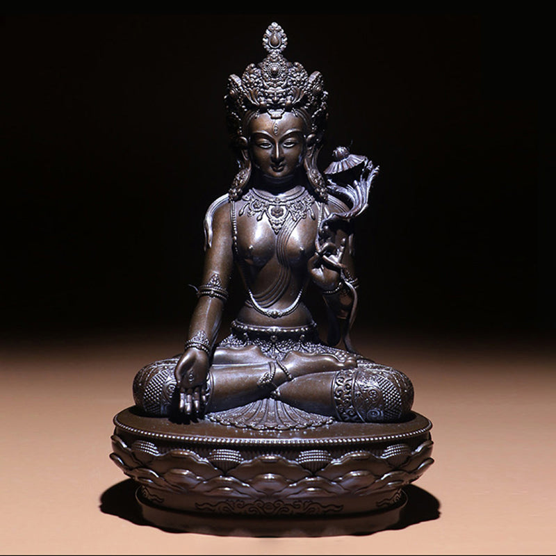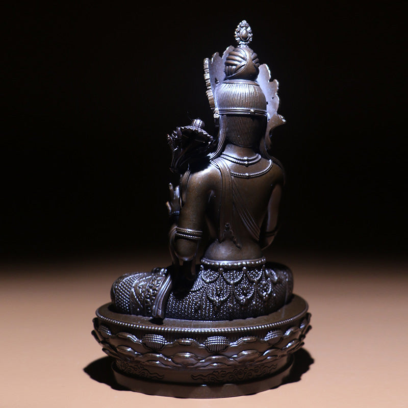 Cast strictly in accordance with the Pratimālakṣaṇa Sutra (Utterances on Image-Making and Iconometry), this White Tara statue ensures perfect proportions. Every detail, from the finely carved ornaments to White Tara's attributes, is supervised by authentic Buddhist teachers. The deep russet tone is achieved through the high copper content in the oxidized alloy, making it a timeless choice for Buddhist shrines and personal practice.