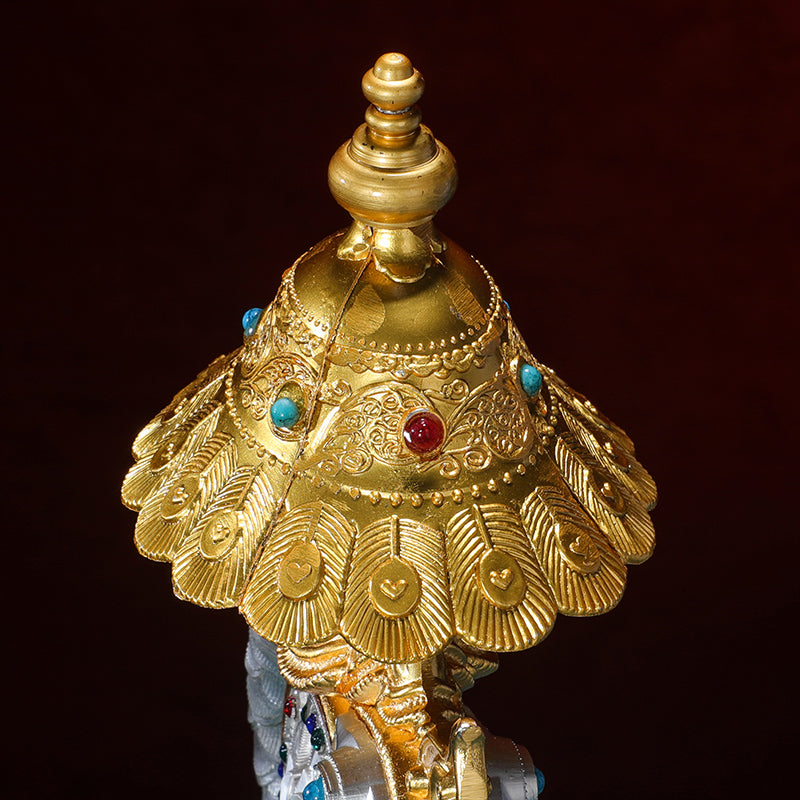 El jarrón del tesoro simboliza una lluvia interminable de larga vida, riqueza y prosperidad y todos los beneficios de este mundo y la liberación.