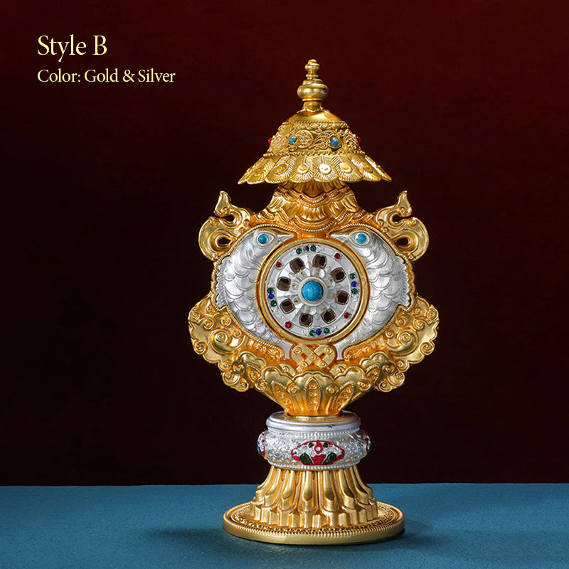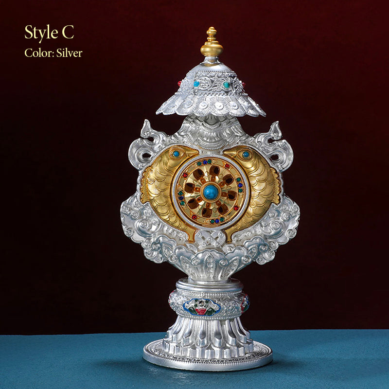 Ocho símbolos auspiciosos son uno de los símbolos decorativos más comunes en la cultura tibetana y generalmente se encuentran en el altar, ofreciendo accesorios y decoración del hogar. Los ocho símbolos auspiciosos del budismo tibetano consisten en: sombrilla, par de peces, jarrón del tesoro, loto, caracola blanca en espiral, nudo sin fin, estandarte de la victoria y rueda dorada.