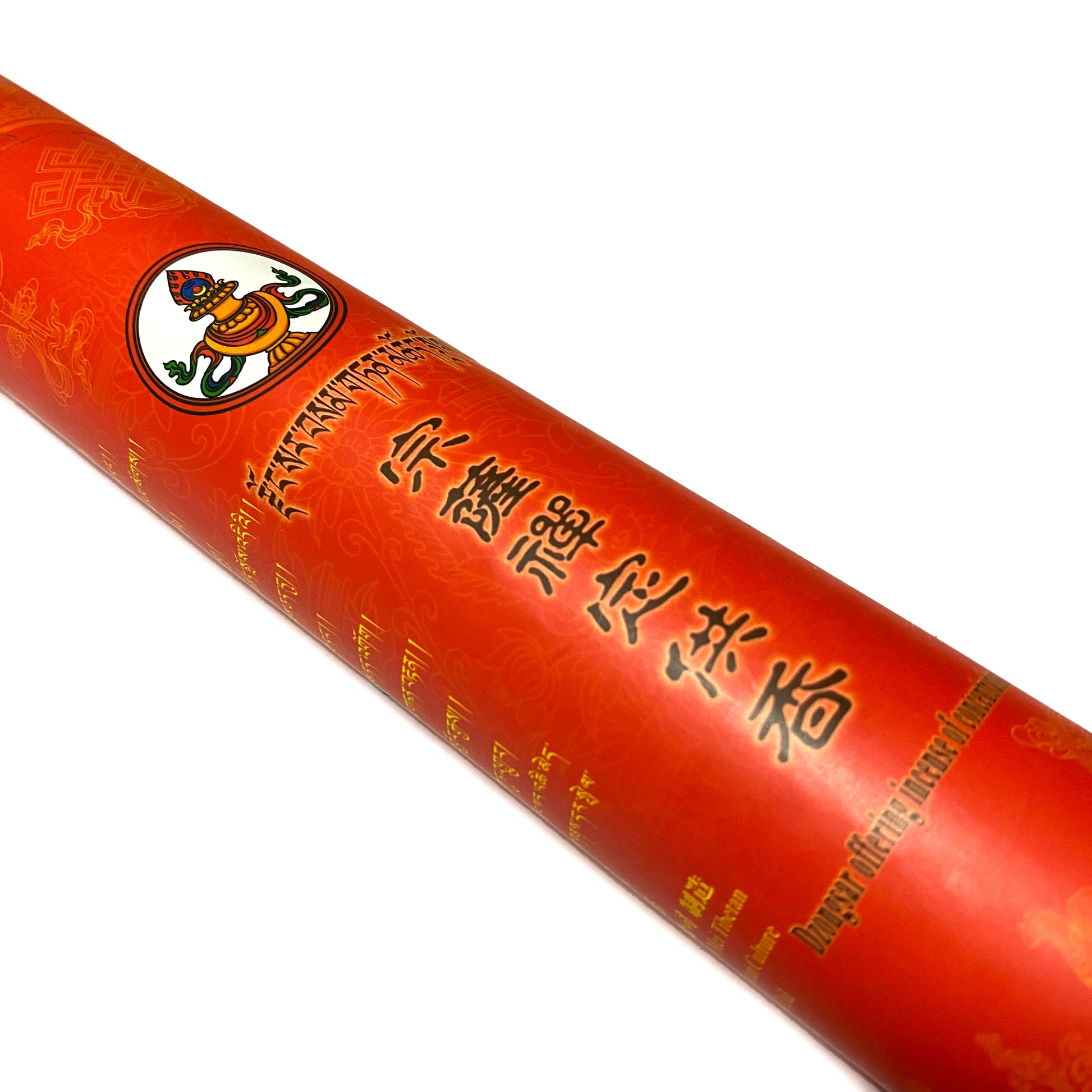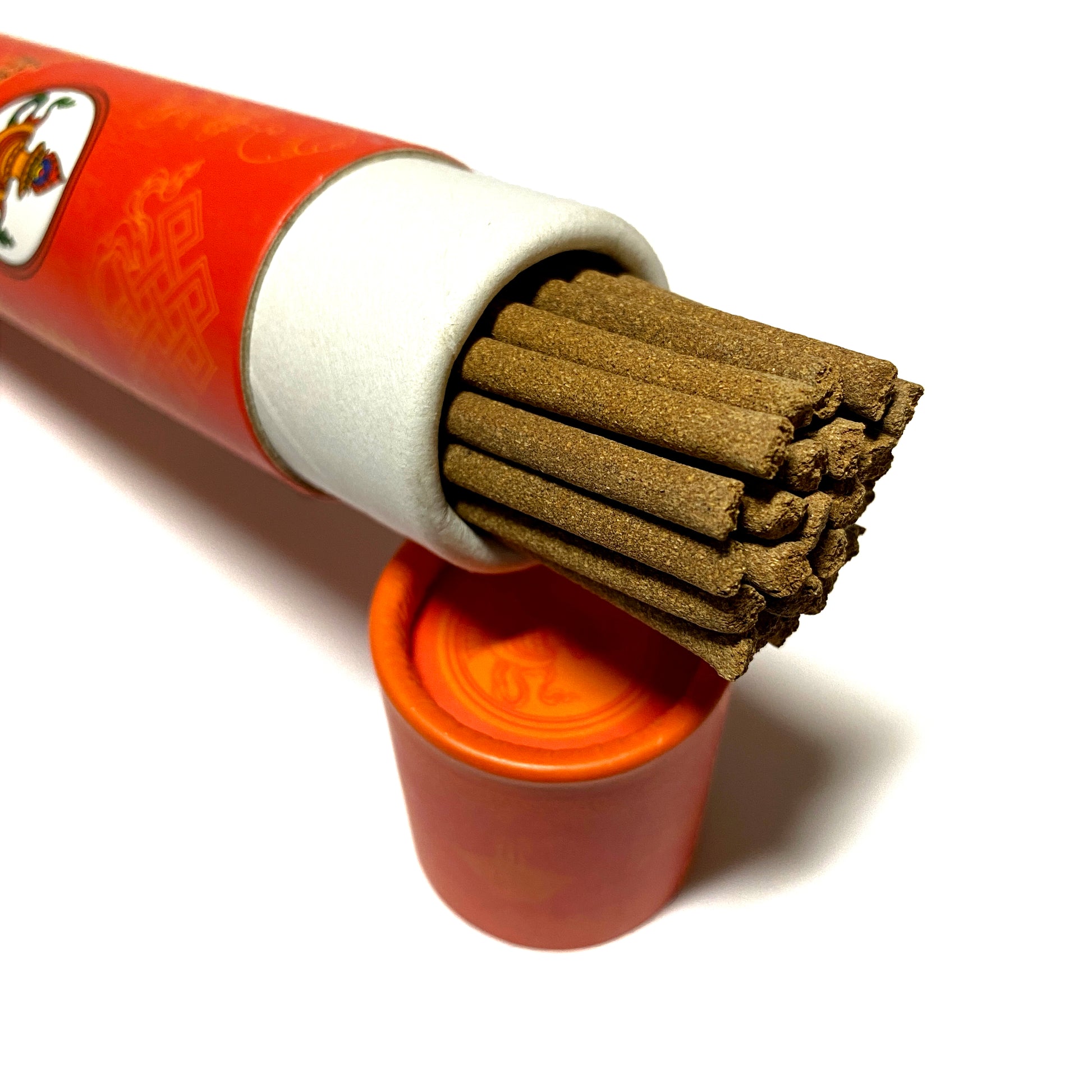 Elaborado con sustancias preciosas del maestro de la India, del Tíbet y especialmente del primer y segundo Khyentse Rinpoche. Combinado con los preciosos ingredientes herbales naturales de las tierras altas del este del Tíbet, este incienso está diseñado para transmitir una atmósfera de relajación y meditación.