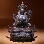 Consecrated Four-Armed Avalokiteshvara Oxidized Copper Statue