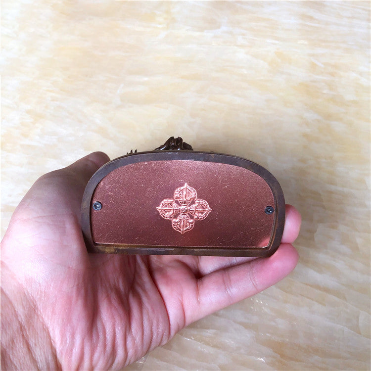 Cast strictly in accordance with the Pratimālakṣaṇa Sutra (Utterances on Image-Making and Iconometry), this Vajrakilaya statue ensures perfect proportions. Every detail, from the finely carved ornaments to Vajrakilaya's attributes, is supervised by authentic Buddhist teachers. The deep russet tone is achieved through the high copper content in the oxidized alloy, making it a timeless choice for Buddhist shrines and personal practice.
