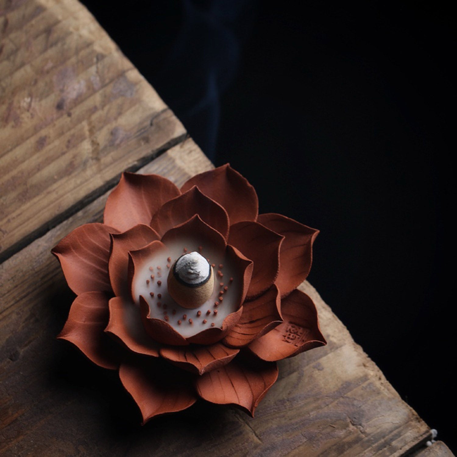 Handcrafted Lotus Flower Incense Holder - Incense Stick and Cone Compatible
