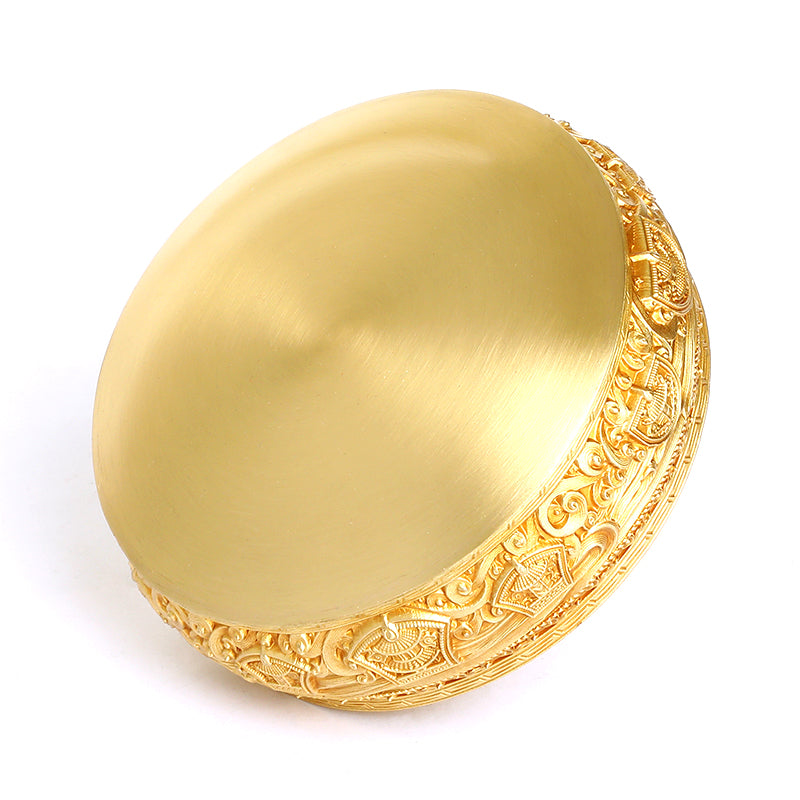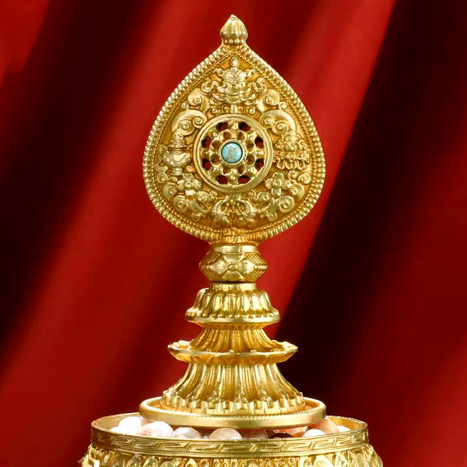 This amazing pure brass mandala set with excellent finishing that bring out the golden tone on the surface, is the best choice as an offering in the altar or for personal practice. The stand of mandala adorned with eight auspicious signs and the map of 37 offerings , while the base mandala plate and each rings carved with extremely fine 37 offerings motifs according to the mandala offering practice manual. The top ornament and the footed stand is embedded with turquoise and other semi precious stones.
