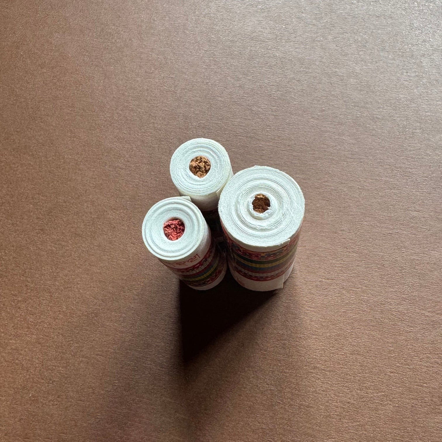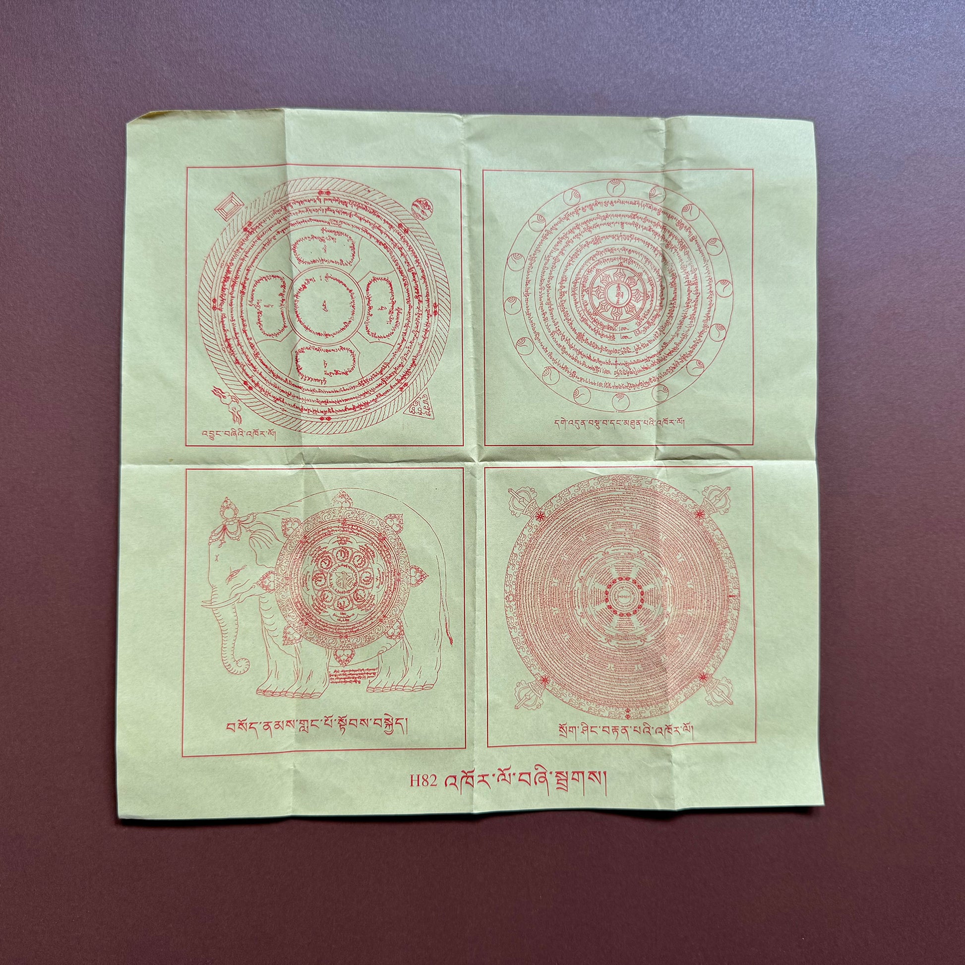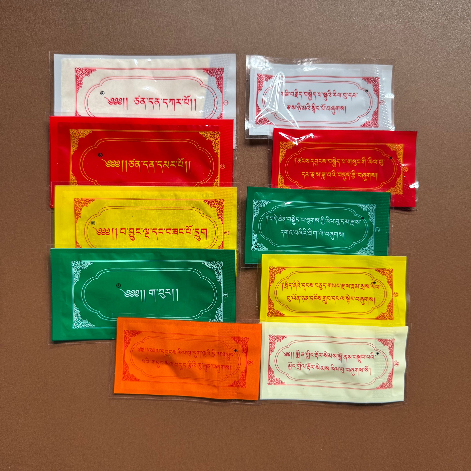 This statue consecration (zung) set contains the wooden central channel, body speech and mind relics pills, collection of blessing substances, essential mantra rolls and mantral wheels.